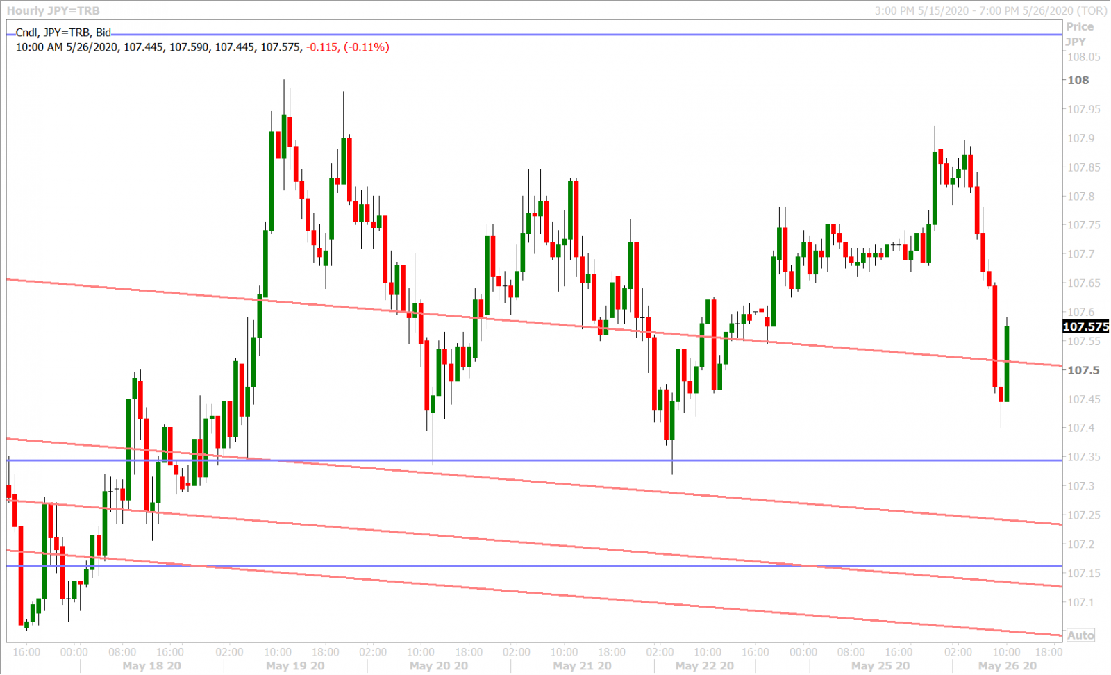 Dollar/yen continues to trade with the broader USD tone, and so this has meant weakness throughout European and early NY trade today, however the market still has a very neutral chart structure. Reuters is reporting over 5blnUSD in options around the 107.80-108.15 strikes over the next two days, but we’re not sure this will be a factor unless something negative derails today’s "risk-on" rally.