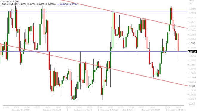 Dollar/CAD continues to range trade this morning as FX traders don’t seem all that concerned yet about last night’s coronavirus fears out of China. A reported 300+ infections in China, six confirmed deaths and reports of people being tested in Thailand, Japan, South Korea and Australia was blamed for the USD-positive, “risk-off” flows we saw during the Asian session, but some more positive economic narratives out of Europe this morning have now put pressure back on the greenback.