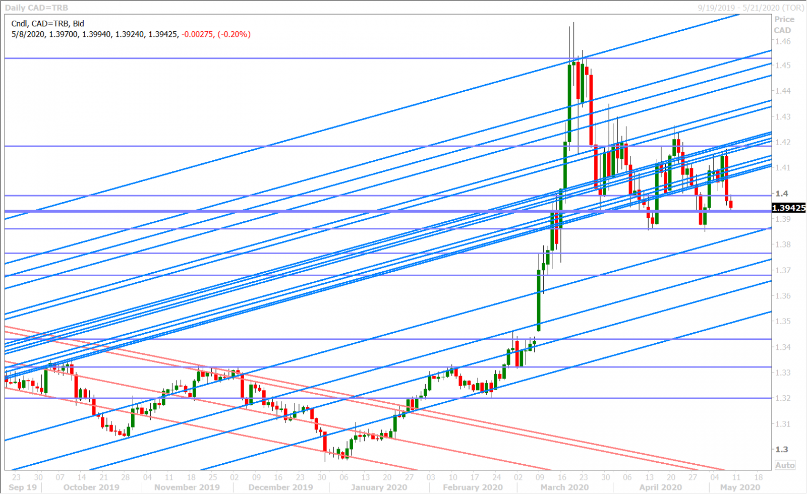 Dollar/CAD is trading steady above chart support in the 1.3920s this morning as traders await the main event of the day; the 8:30amET release of the official US and Canadian employment reports for April. The consensus expectations are as follows: