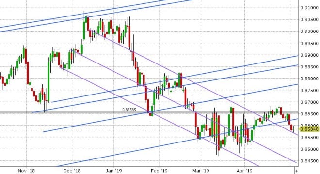 USDCAD: Dollar/CAD is stuck at trend-line resistance in the 1.3430-40s this morning as the broader USD struggles to build upon yesterday’s post Fed gains. The Federal Reserve delivered what was arguably a more upbeat hold on interest rates. While the press release had a dovish tilt to it (citing global economic issues, muted inflation pressures and the need to remain patient), the press conference had a more positive tone (with Jerome Powell acknowledging better financial market conditions and his view that the low inflation data was “transitory”). The reaction in the FX was what one would expect; lower initially for the broader USD, but then a sharp reversal higher during the press conference. USDCAD made a run to close above chart resistance in the 1.3430-40s, which is what the fund longs needed to do in order to repair the market’s technical outlook on the daily chart. They achieved this, but just barely and unfortunately a few waves of broad USD sales in overnight trade is hindering the upward momentum as we head into NY trade today. European traders had reason to be more optimistic and buy EUR/sell USD this morning, as the Markit Manufacturing PMIs out of Spain, Italy, France and the Eurozone (for April) all beat expectations. Germany’s weaker than expected Manufacturing PMI, however, calmed the EUR bid a little bit though and allowed USDCAD to recover somewhat. We now head into a North American session that will feature the US Factory Orders data for the month of March at 10amET. The 10am hour is also when over 1.1blnUSD in USDCAD options will be expiring at the 1.3400 strike. With June crude oil prices now slipping below the 63.10 support level this morning and talk of a strong US Employment Report for tomorrow likely to make the rounds today (following yesterday’s ADP beat), we think USDCAD traders will attempt to build upon yesterday’s gains. The Bank of Canada’s Stephen Poloz largely repeated his optimistic House of Commons testimony before the Senate when he spoke late yesterday.