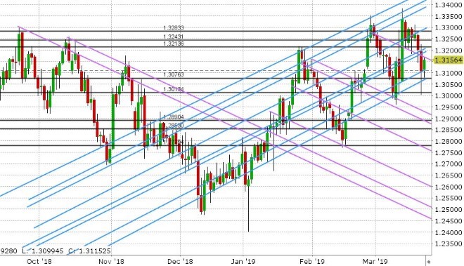 GBPUSD: Sterling is somehow avoiding the broad “risk-off” flows of today, as it appears some “no-deal” Brexit risk has been removed from the market. The EU’s Donald Tusk confirmed last night that Europe is willing to grant the UK an unconditional Brexit extension until April 12th, and a further extension to May 22nd if the UK’s parliament can finally pass the Withdrawal Agreement next week. The EU is still not willing to renegotiate, but Theresa May now has two more weeks to convince her country to accept the only agreement on the table. Chart support today rests in the 1.3070s, while resistance is very chunky from the 1.3170s to the 1.3220 level.