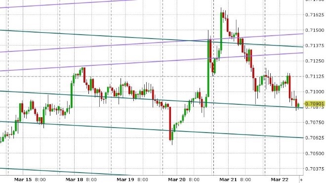 AUDUSD: The Aussie is trading down this morning, as one might expect given the moves lower in EURUSD and copper. Yesterday’s NY close did not produce an bearish, inverted hammer candle, but the pressure on chart support in the 0.7080s still remains at this hour. We think a move below this level may usher in a new wave of selling and keep the leveraged fund short position in charge here.