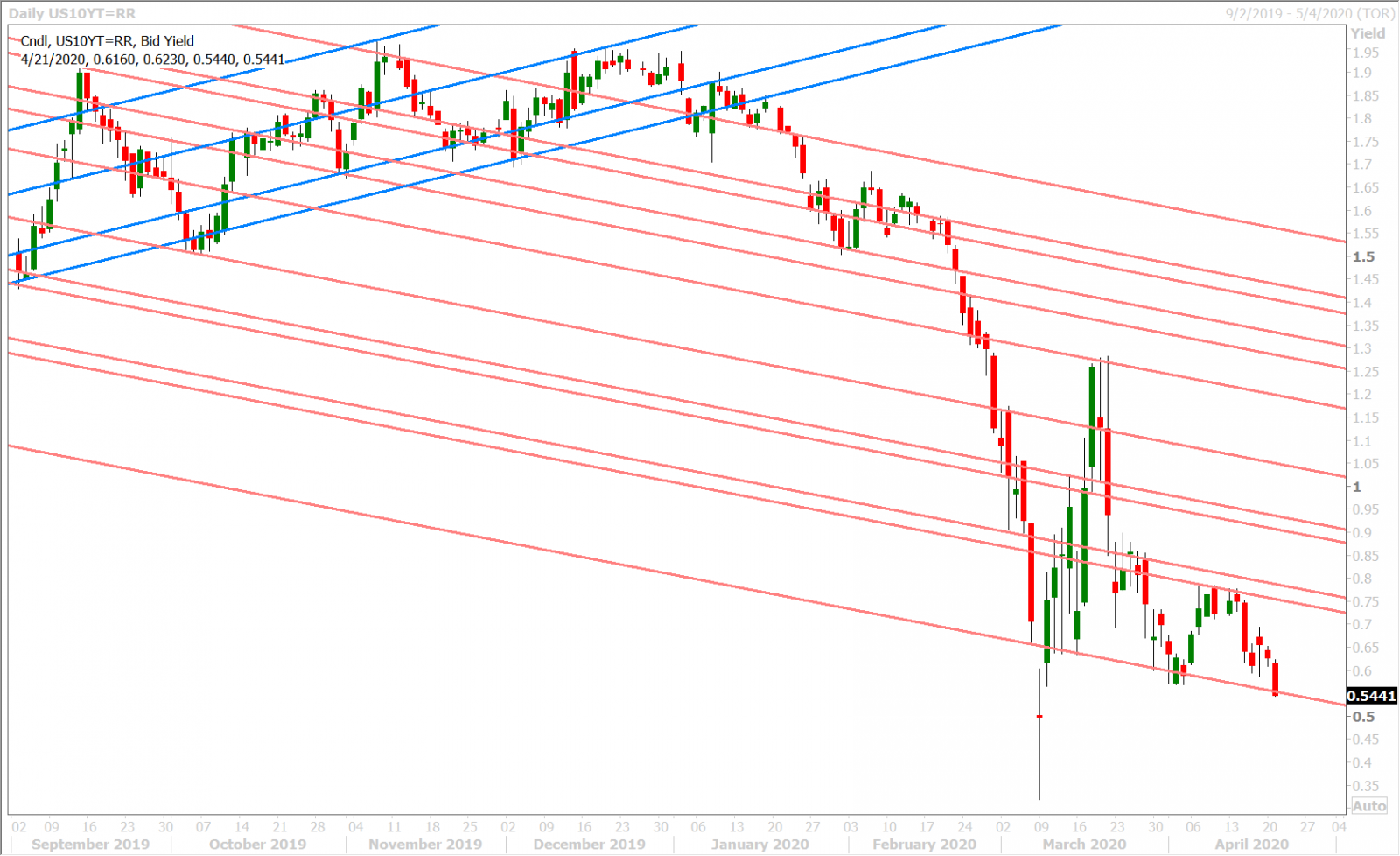 The market has since found a bid into NY trade as oil-driven “risk-off” flows permeate their way through the broader markets again. The US 10yr yield is re-testing key support at the 0.55% handle. The S&P futures are trading another 2% lower after falling 2% yesterday. The June WTI futures contract is currently trading -30% after being down 45% in early European trade this morning.